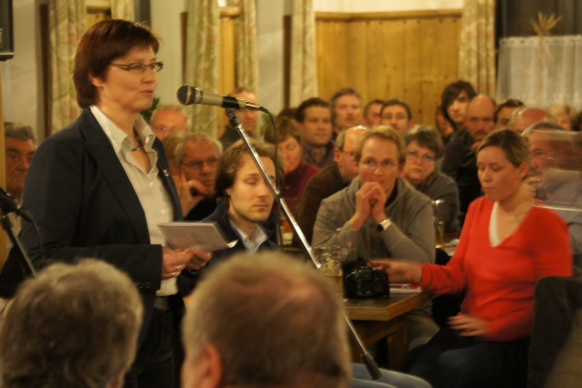 Vor 130 Zuhörern fand die letzte große Veranstaltung von Rosi Steinberger zur Bürgermeisterwahl in Kumhausen statt. Im Gasthof Bauer in Kumhausen war der Saal bis auf den letzten Platz belegt. Rosi Steinberger stellte sich und ihre Ziele für Kumhausen vor. Ihre engagiert vorgetragene Rede wurde immer wieder unterbrochen von Zwischenapplaus. "Wo, wenn nicht in einer Kommune wie Kumhausen können wir zeigen, dass es möglich ist, zusammen zu halten und einen Gegenpol zu bilden gegen den zunehmenden Egoismus und die Rücksichtslosigkeit in der Gesellschaft. Hier sind meine Kinder aufgewachsen. Hier habe ich mich vielfältig engagiert. Hier möchte ich meinen Beitrag leisten, dass Kumhausen einen guten Weg in die Zukunft nimmt." Mit diesem Worten schloss Rosi Steinberger ihre Rede, die heftig beklatscht wurde. Sogar „Bravo“ – Rufe waren zu hören.